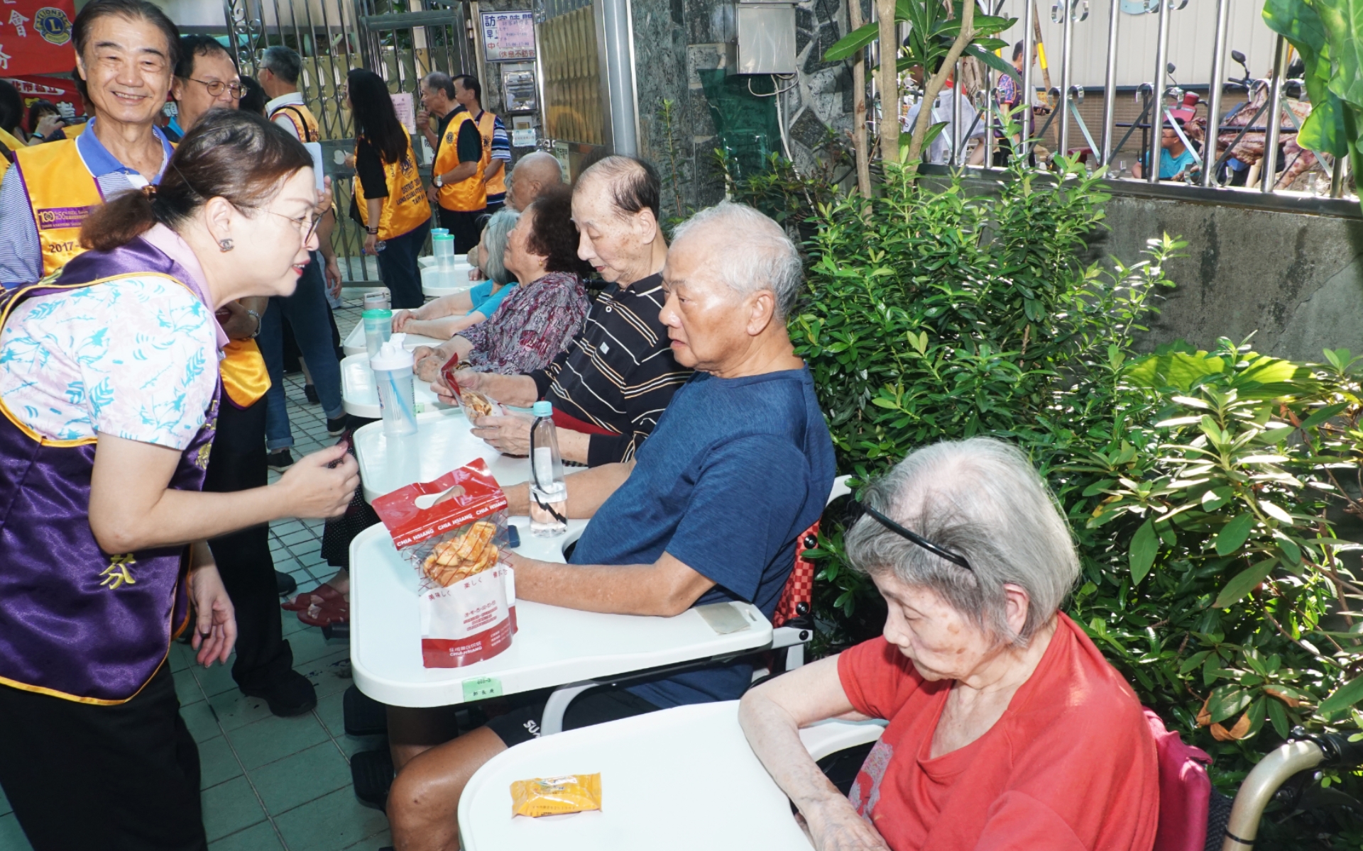 艷陽高照的中秋節前夕,榮皇獅子會黃文惠與獅友不畏天氣酷熱,和總監暨區內閣行政團隊,集結於景安老人長照中心,為長者募集關廟麵、睡褲、餅乾、柚子、飲料等日常用品貢獻綿薄心意。