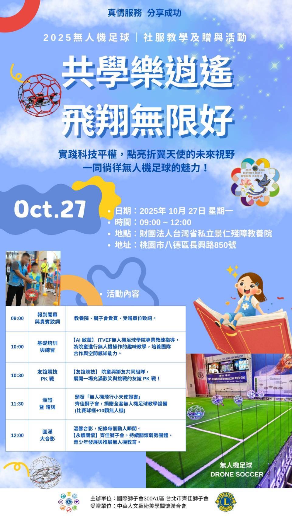 【社會服務】2025/10/27 齊佳獅子會社會服務 - 共學樂逍遙,飛翔無限好! 2025無人機足球社服教學及贈與活動