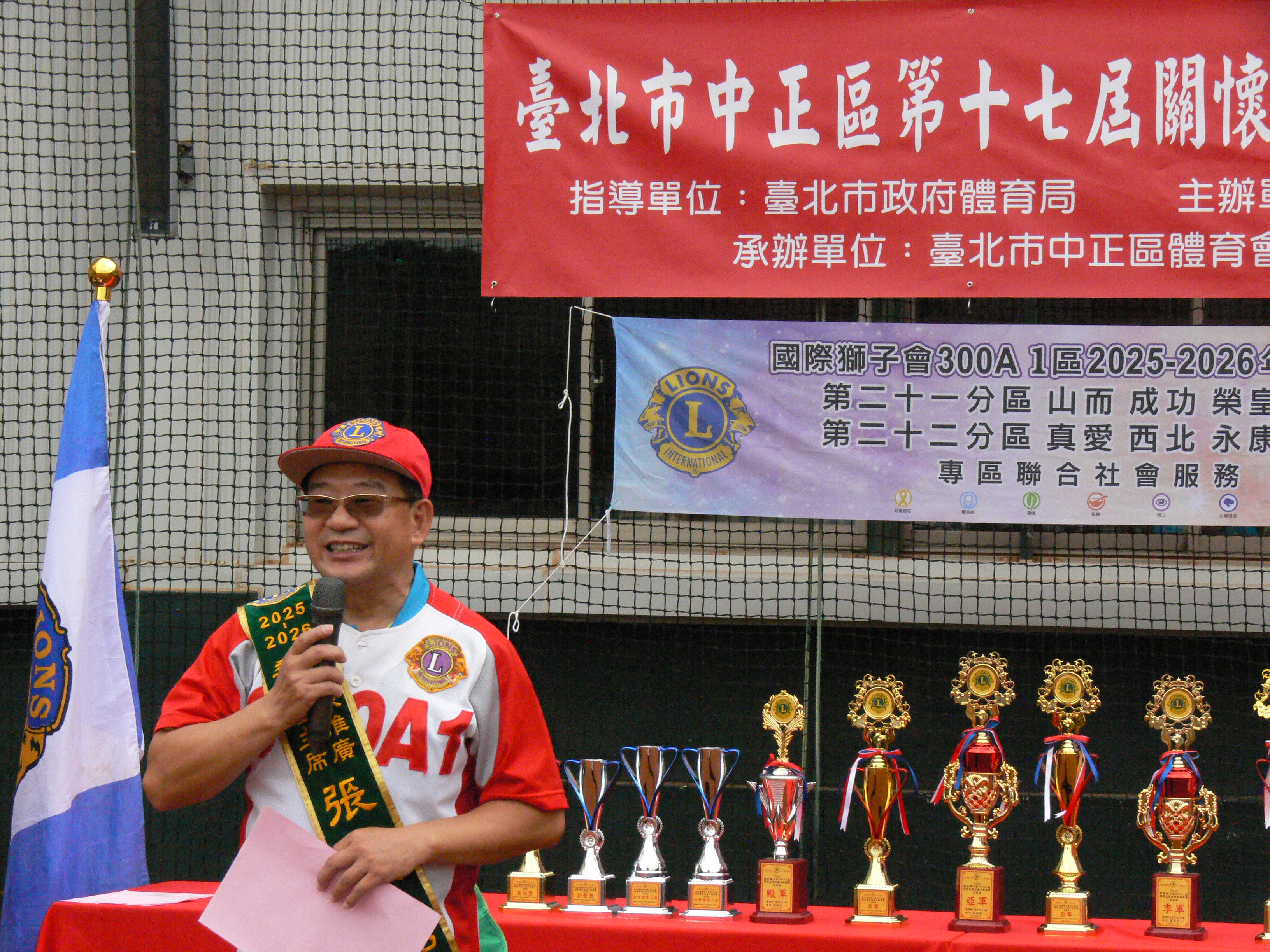 開幕式中,總監率領區內閣行政團隊親臨現場支持,並讚揚張主席多年推動壘球活動的努力,並捐助臺北市私立義光育幼院及臺北市視障音樂文教基金會等單位,將運動的喜悅化為實際的關懷行動,充分展現「以愛連結,以行動服務」的獅子精神。