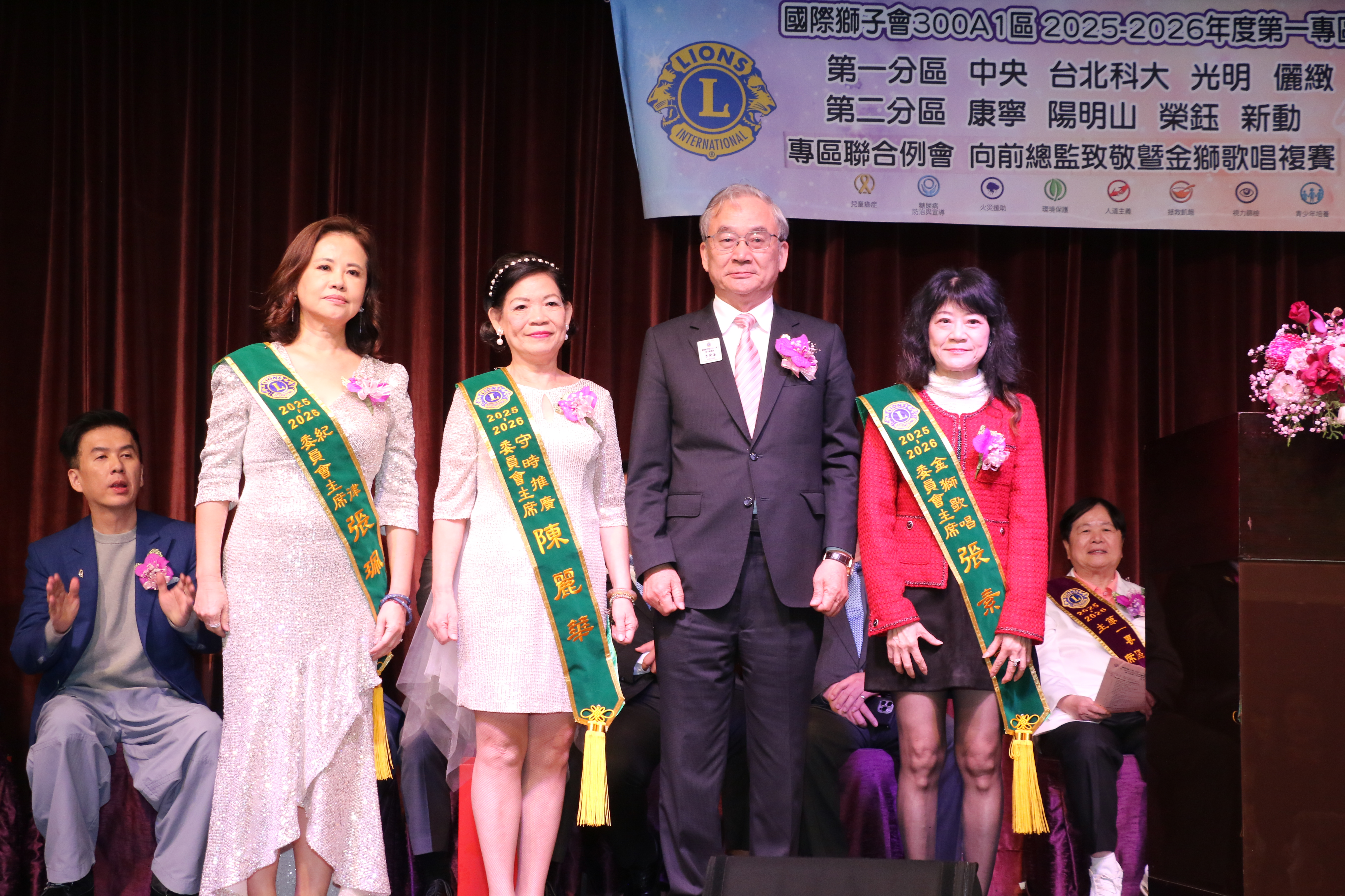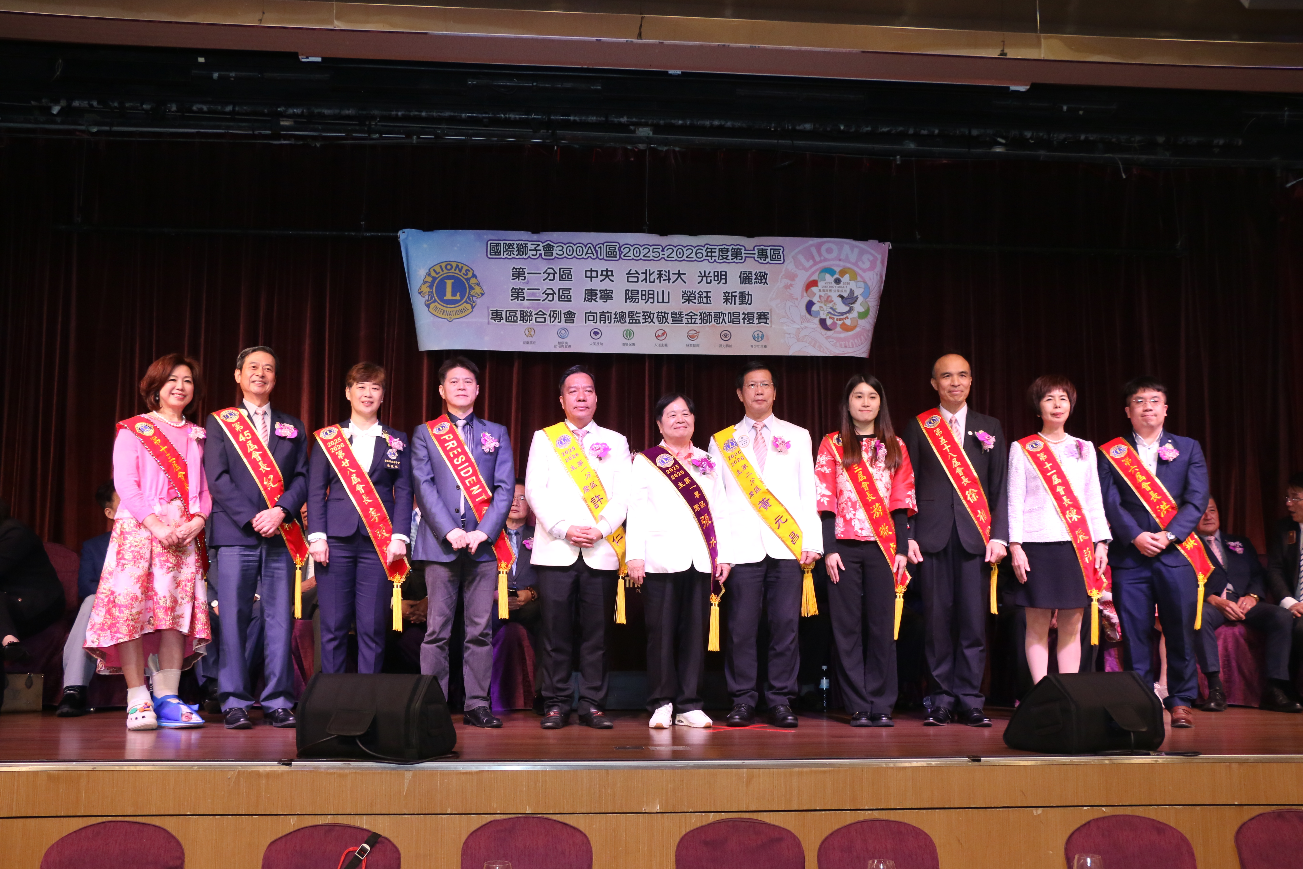 之後由第一副總監方仲海獅友為金獅歌唱委員會主席張素華、守時推廣委員會主席陳麗華、紀律委員會主席張珮茵獅友披掛職務肩帶,象徵未來12個專區複賽的重任正式啟動。