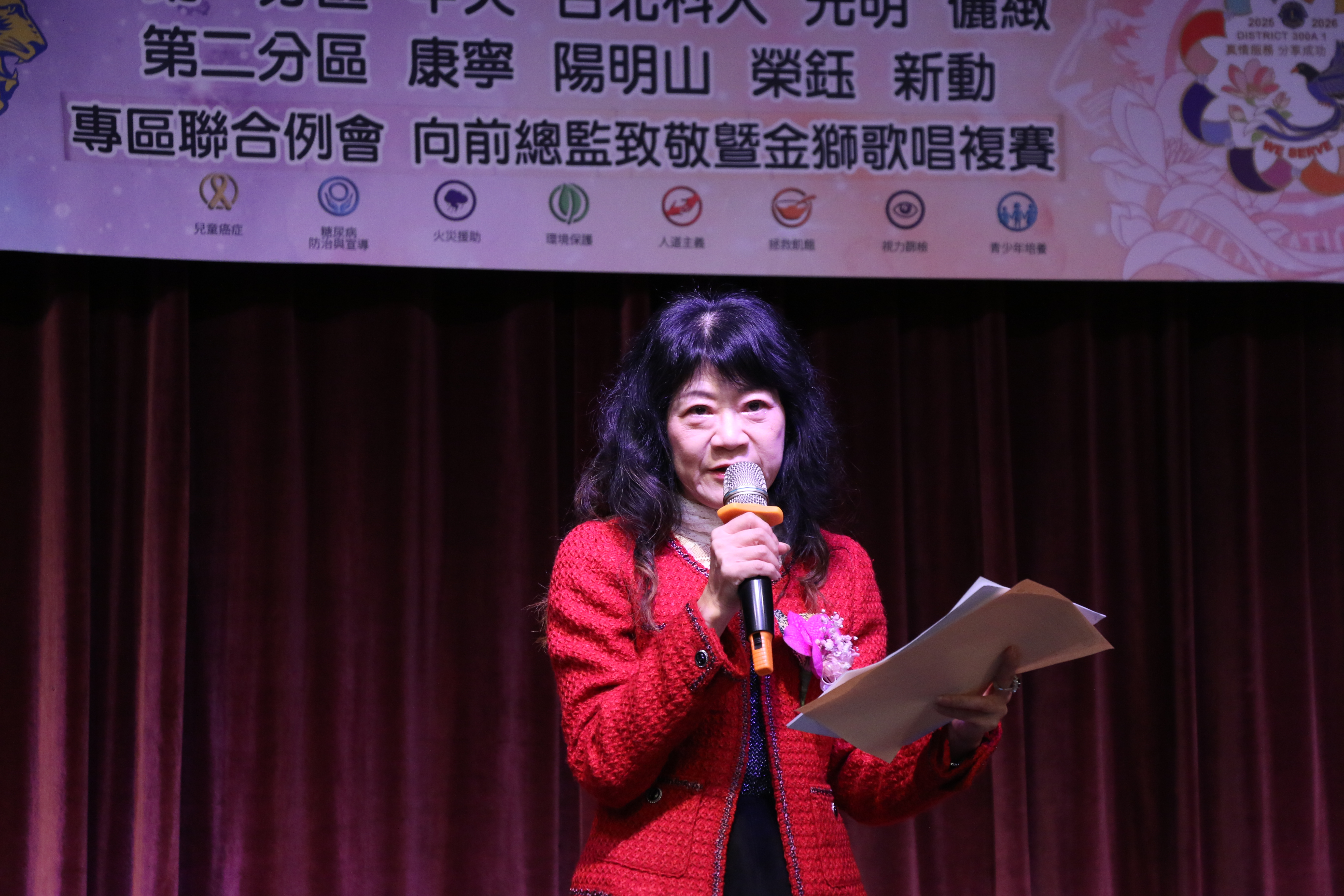 總監致詞時向歷任前總監表達敬意,前總監們的無私奉獻,奠定300A 1區的穩固基礎,也激勵後進獅友延續服務精神。同時,她肯定第一專區全體獅友在活動籌備、行政協助與舞台呈現上的投入,展現專區令人讚嘆的創意與爆發力。