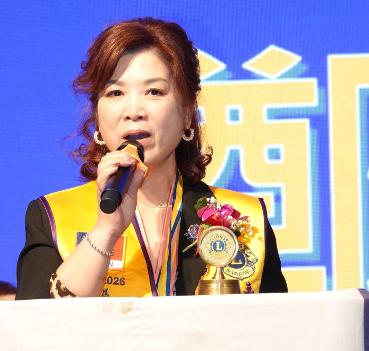 輔導會A 2區雙連獅子會鄭月鳳會長說:和平子會人才輩出,今天很榮幸來見證這輝煌的時刻,輔導會與有容焉。