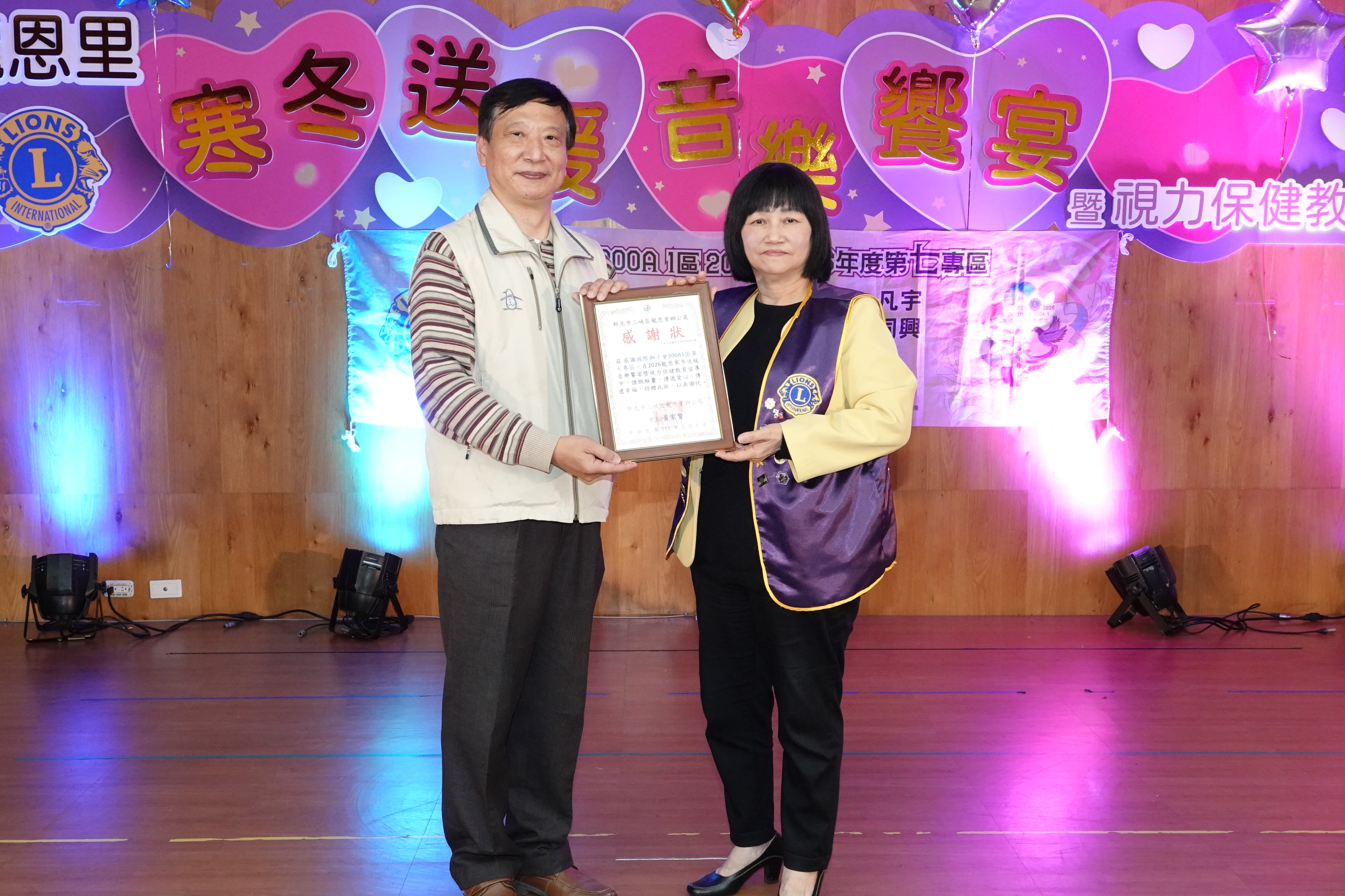 第七專區於三峽區龍恩里舉辦「寒冬送暖音樂饗宴暨視力保健教育宣導活動」,活動在細雨中溫馨展開。雖天候微涼,現場卻因愛心匯聚而格外溫暖。活動已連續三年於龍恩里舉辦,充分展現獅子會深耕社區、持續關懷弱勢的服務精神。