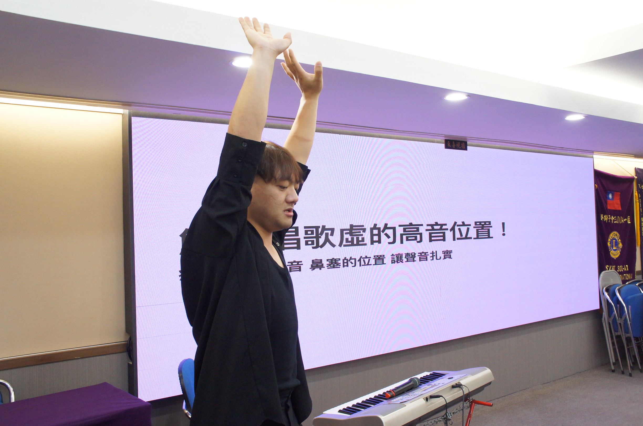 講師在右家主席引言介紹下正式開講,內容涵蓋腹式呼吸、發聲技巧及舞台魅力展現。透過深入淺出的講解與實際示範,讓在場獅友收穫豐富、意猶未盡,為這場午後音樂饗宴畫下圓滿句點。