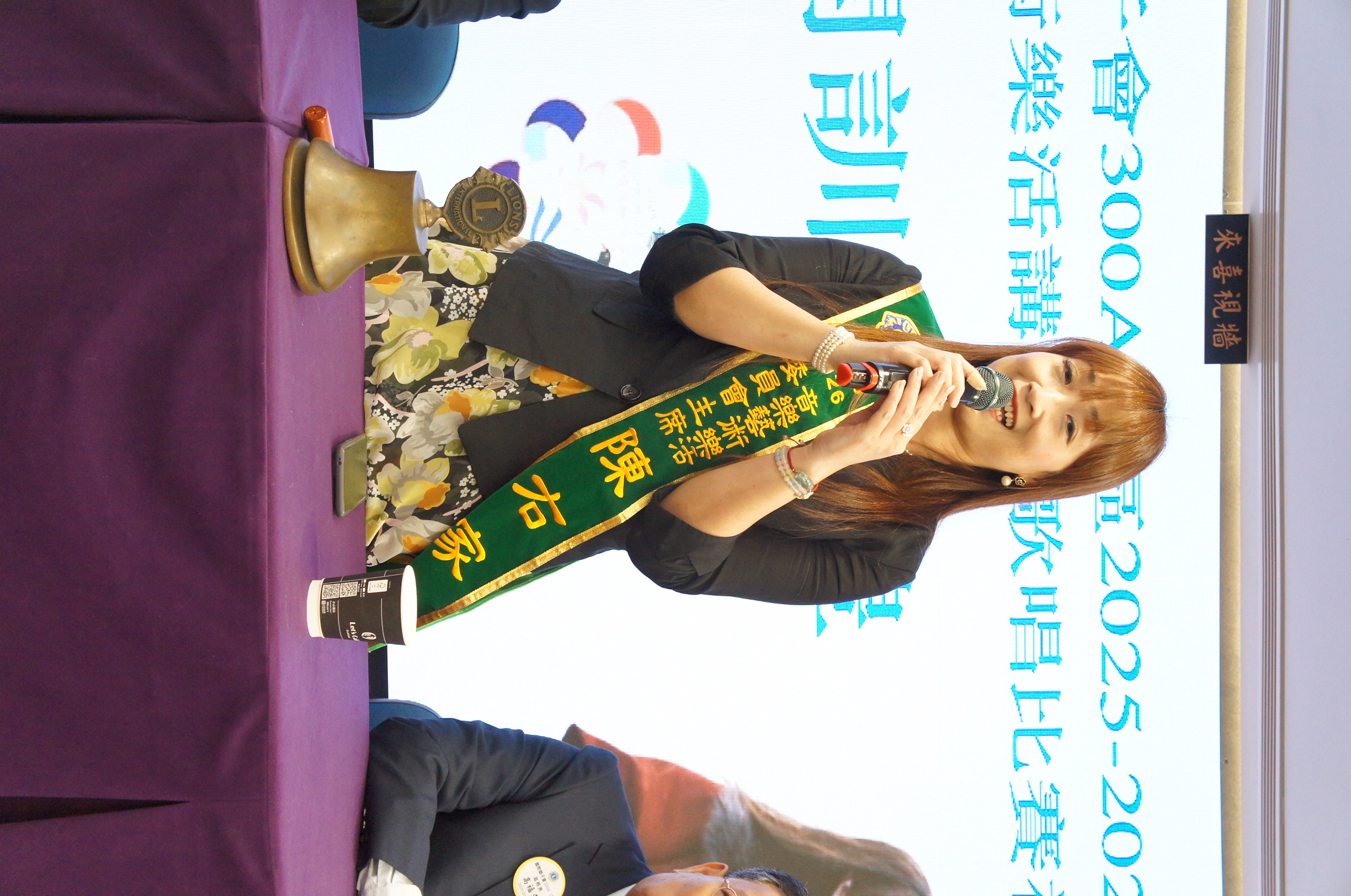 隨後,財務長蔡瑞逢獅友代表總監致詞,感謝「琵琶女神」陳右家主席用心籌辦此次講座。她提到,唱歌是一門需要方法的藝術,許多人初學時多半憑感覺發聲,當學會運用丹田與正確呼吸後,才能真正掌握聲音的穩定與力量,進而提升整體表現。