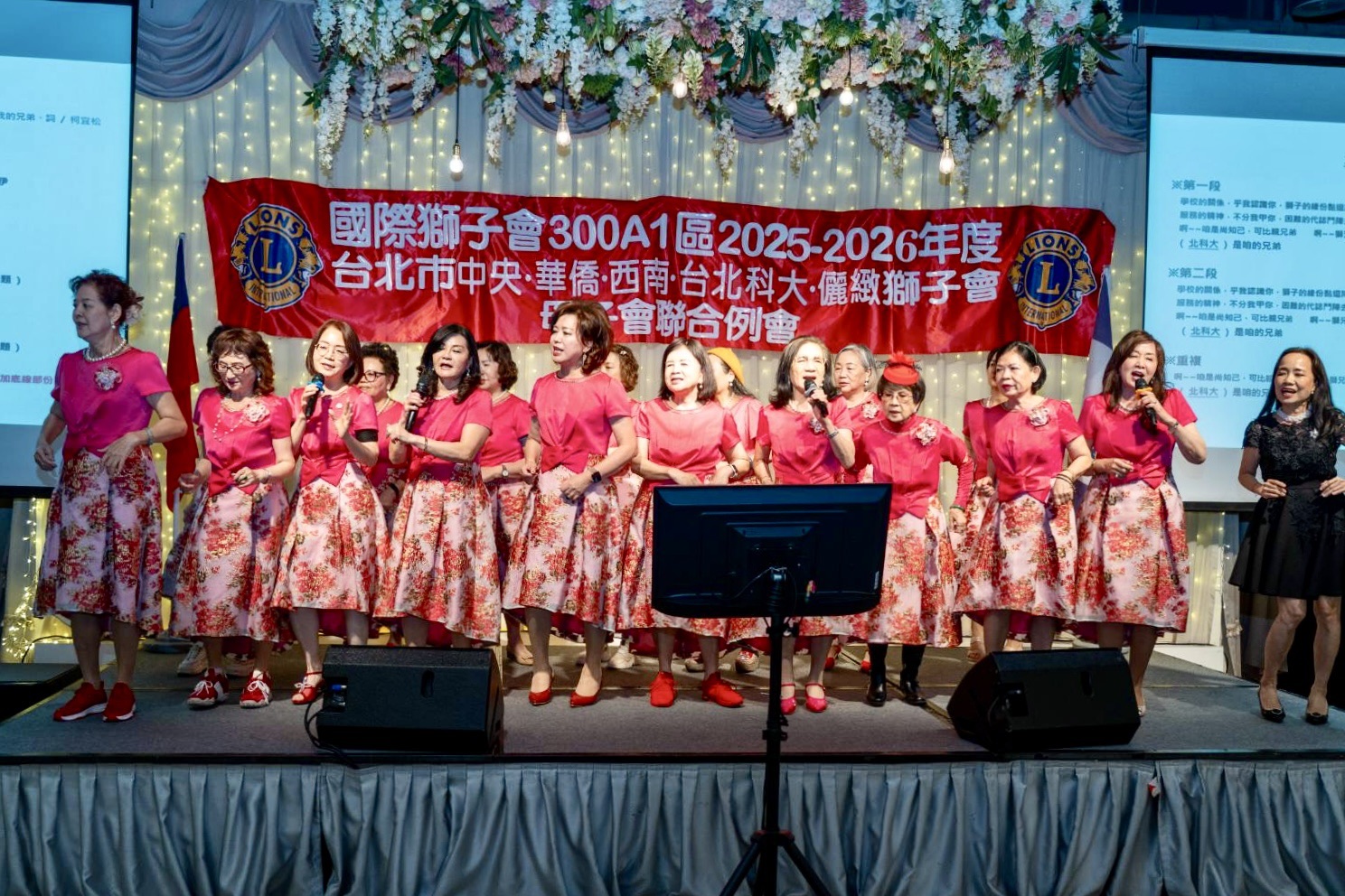 晚會由華僑前會長高宇琦與儷緻前會長楊蕙霞獅友主持揭開序幕,現場氣氛熱絡。慶生活動後,五位會長領唱〈感恩的心〉,旋律響起的那一刻,全場彷彿被一條看不見的情感之線緊緊相繫,展現母子會之間最深厚的情誼。
